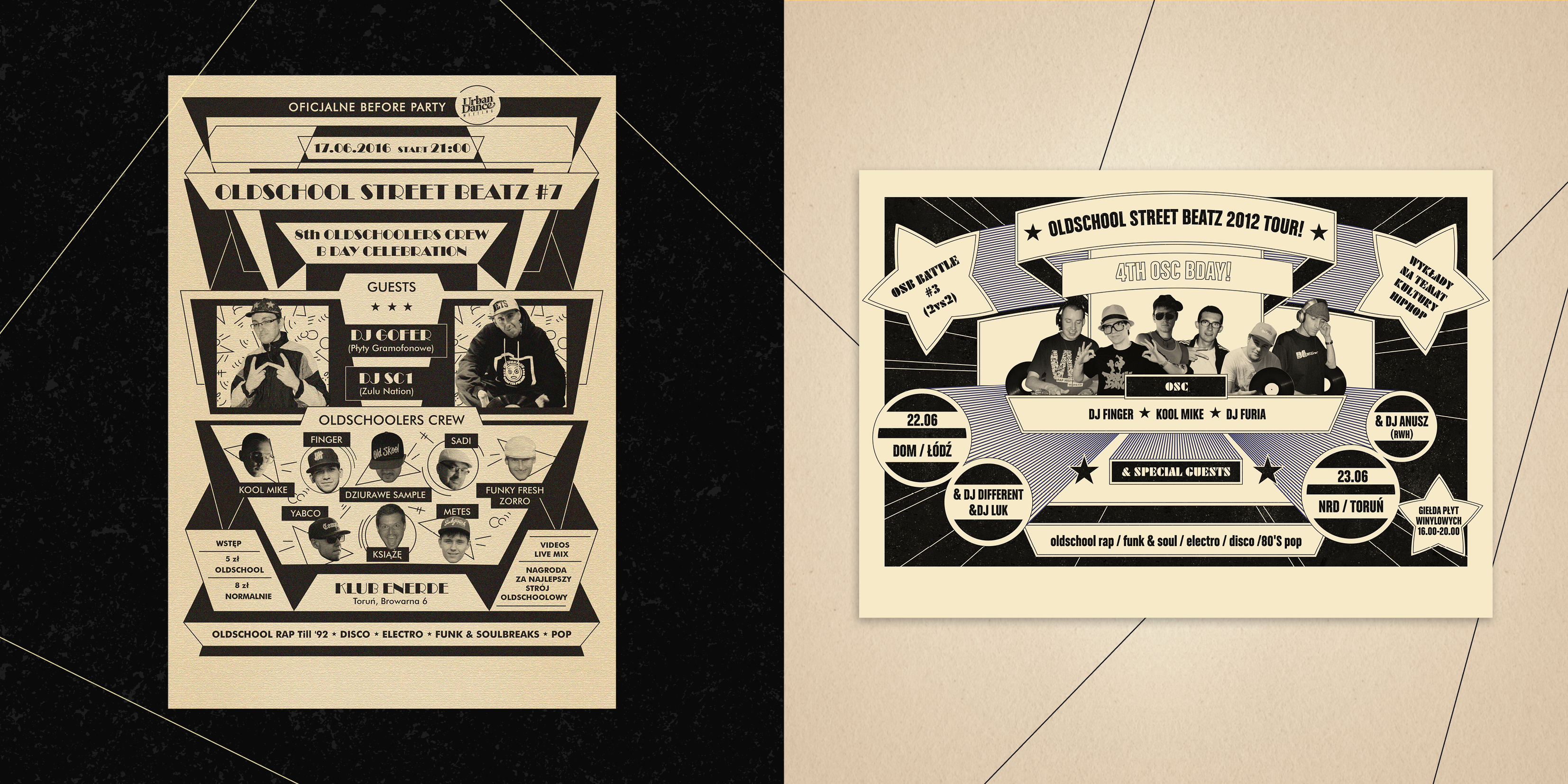 Plakaty promujące cykl imprez Oldschool Street Beatz, format A3, 2012-13